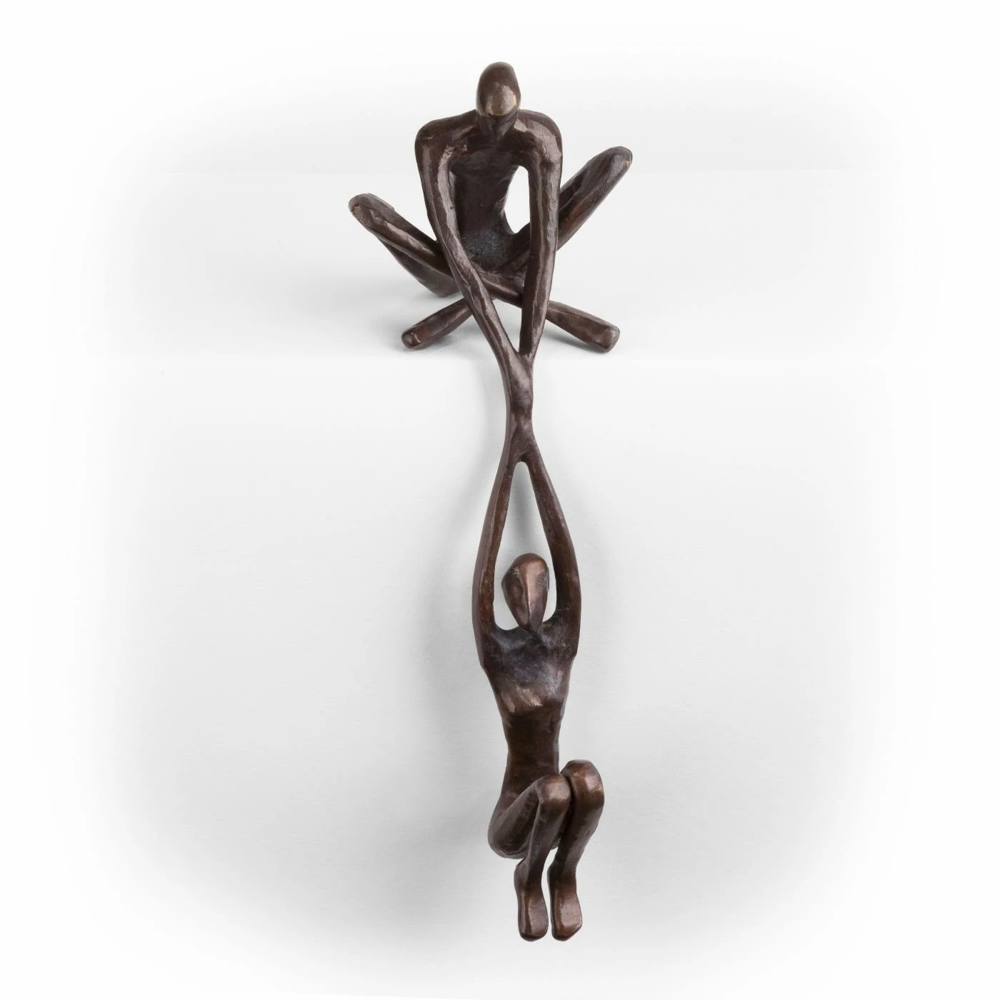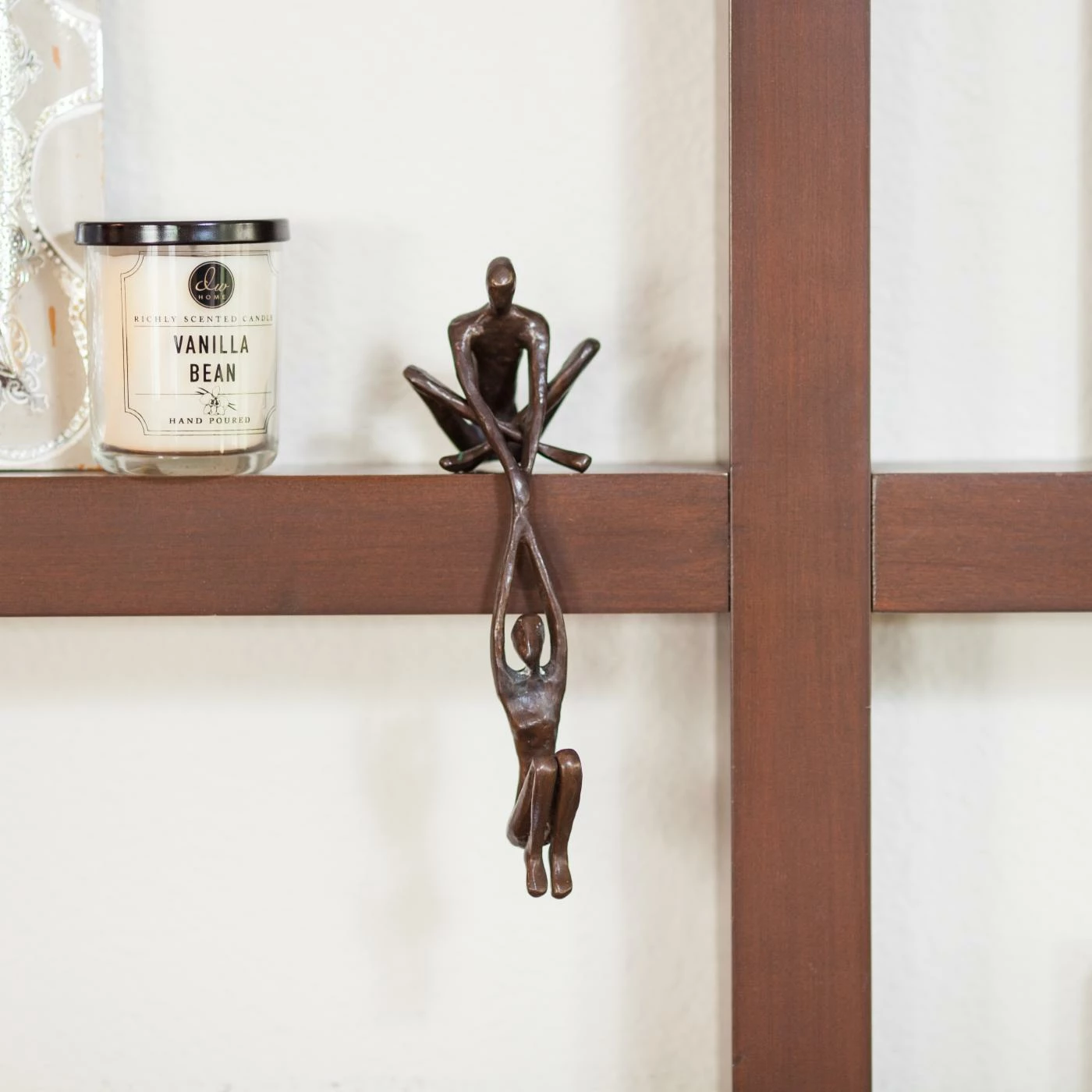 The Danya B Man Lifting Woman from Ledge Sculpture brings whimsy to your home decor by featuring a unique design that extends off the edge of your shelf, table, or mantel. It’s handcrafted from bronze and features and subtle texture for the rough, handmade look. It’s a fun finishing touch to any room and is sure to generate a smile.